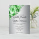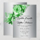 Capture your guests’ attention with this beautiful silver and green floral wedding invitation that features a bouquet of gorgeous green roses. With a metallic silver background, this wedding invite is sure to make a stunning statement and spark some excitement for the big day. Customise the details in a few simple clicks to fit your perfect wedding theme. The reverse of the invitation has the same silver background, with the green rose bouquet in the middle to make it an eye-catching, two-sided design.