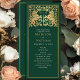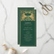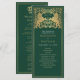 Unveil the magic of your big day! These mediaeval fantasy wedding programs feature a regal lion surrounded by intricate gold florals and a monogram against a green background, blending elegance with a touch of grandeur. A perfect keepsake for your fairytale celebration! The gold featured on this item is NOT real foil and is printed in flat colours.