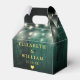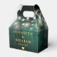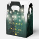 These emerald green string lights rustic wood boho barn wedding favour boxes can be personalised with your information in chic gold typography. Designed by Thisisnotme©