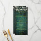 These emerald green rustic string lights barn wood menus can be personalised with your special wedding day menu in elegant gold typography. Designed by Thisisnotme©