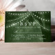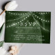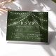 Ensure your guests can easily respond to your special day with our green tree string lights wedding RSVP card. This charming design features a rustic tree adorned with string lights, creating a magical and inviting atmosphere. Perfect for outdoor and woodland-themed weddings, this unique RSVP card will beautifully complement your wedding invitations and impress your guests.
