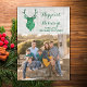 Green Rustic Watercolor Deer Holiday Photo Flat Card