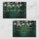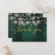An elegant emerald green rustic barn wood string lights wedding thank you reception card, personalised with a special message and the bride and groom's names. Designed by Thisisnotme©