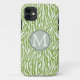 Green Safari Zebra Print with mint monogram personalised zigzag stripes