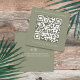 A simple minimalist wedding rsvp with QR code website online rsvp, with QR code website online rsvp, with URL scannable scan online, with guest more information URL response, a respond via website QR code, an elegant botanical green sage colour, a spring summer fall winter, a wedding invitations enclosure cards, a modern minimalist typography style, a trendy stylish calligraphy script font, a budget-friendly rsvp square enclosure card