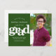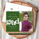 Make sure all your friends and relatives will be able to celebrate your graduate’s milestone graduation! Send out this stunning, simple, modern, personalised photo “Save the Date” postcard for an event to remember. Bold, graphic, white typography overlays a hunter green background. On the right hand side, add a photo of your choice. Personalise the custom text with your graduate’s name, class year and date. Your custom message, a hunter green graduation cap icon and your return address adorn the back. Matching invites, thank you cards, cap toppers, napkins, plates and other graduation goodies are also available in this trendy and stylish collection. Guaranteed to add stylish fun to their special occasion!