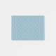 This Post-It notepad has an art deco design of green half circles connect with lines on a field of blue.