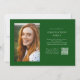 Green Elegant Script QR Code 3 Photo Graduation Party Invitation features a beautiful and elegant script overlaying your photo. Your party details and photo are on the back, along with a QR code for your graduate's wish list.