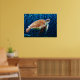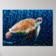 Green Sea Turtle Honu on Blue Fractal Art Poster