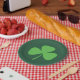 A bright green shamrock design decorates these green paper plates. These shamrock paper plates are great for a party, St. Patrick's Day, Saint Patrick's Day, holiday, etc....The design is from original art.