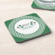 A set of six, square, cork-backed Coasters, with green Shamrock leaves and 'Proud to be Irish' in Celtic scripts, on a White background with a Check Gingham border. Part of the Posh & Painterly 'Shamrocks' collection.