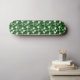 A whimsical shamrock print on a dark green background.