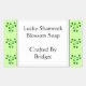 A custom canning, soap or craft label with a background pattern of shamrocks in greens formed in a circle create a lucky background pattern. Click Customise It to change fonts, elements, background colours, even save your design for later,