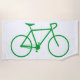 This beach towel design features a green silhouette of a bicycle. It could make a great gift for somebody who really likes bike riding.