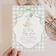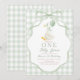 Celebrate your little one’s first birthday with this adorable “One Silly Goose” invitation template. Featuring a soft watercolor goose, sage green gingham background, and elegant ribbon frame, this design is perfect for a charming garden or spring birthday party. Easily personalize with your party details for a cute and memorable celebration.