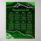 Guide your guests in style with this elegant wedding seating chart featuring a green agate marble design accented with luxurious silver details. The bold geode-inspired background creates a dramatic and sophisticated look, perfect for fall and winter weddings, formal celebrations, or glamorous evening events. Designed for up to eight tables, the layout keeps names organized and easy to read while complementing the organic agate texture. Ideal for couples seeking a stylish and unique wedding display, this seating chart blends natural stone aesthetics with a refined, modern layout. Easily personalize all text to match your wedding details and create a beautiful focal point for your reception.