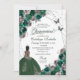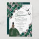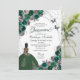 Emerald Green & Silver Butterfly Princess Quinceanera Birthday Invitation