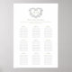 Fern green and silver heart wreath outline drawing art monogram seating table plan. Edit this wedding seating table chart with your own seating arrangements and guests' names. An original modern decorative silver effect heart graphic art by Sarah Trett for www.mylittleedenweddings.com exclusively on Zazzle.