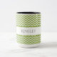 Enjoy your morning coffee with an amusing Green Simple Chevron Personalised Coffee Mug. Mug design features a simple chevron pattern and area you can personalise with your name. Additional gifts available with this design as well as a variety of colours.