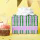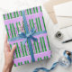 Green skis with snow on purple wrapping paper