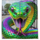 This shower curtain has a green snake on it.
