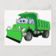 A whimsical green dump truck ready to hit the construction sites and haul the heavy loads or plough the snow covered roads to provide safe road travel.