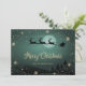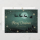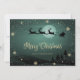 A beautiful snowy green Christmas cards featuring a winter scene with Santa Claus and reindeer, snowflakes, stars and falling snow on the front and snowflakes and stars at the back. Easily personalise this green Christmas card with your family name and text.