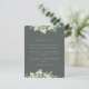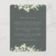 A dark grey green flat wedding reception enclosure card featuring trails of hand painted snowberries and eucalyptus on the front and a wreath on the back of the card. All text is fully editable and the scattered dots on the front and back can be deleted before ordering if you would prefer. This card is available with alternative botanical designs, in a landscape format, and in different colours. Please view the Collection in my store to see all options and coordinating items.