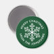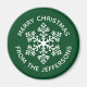 A white snowflake on a green background with "Merry Christmas" from the family around it.
