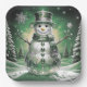 Beautiful Green Snowman Snowflakes Holiday Paper Plate