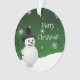 Add a whimsical touch to your Christmas tree with a Green Snowman Winter Scene Ornament. Ornament design features a happy snowman in a snowy wintry scene against a green background adorned with matching colour snowflakes. Additional gift and holiday items available with this design as well.