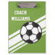 This fun design features white diagonal stripes with a soccer ball. The background is green. I have this design available in a variety of colours. If you don't find what you're looking for just message me. Personalise the front and back with a name, team, phrase or quote. These clipboards are great for a soccer player, coach, physical education teacher, gym teacher, little league coach, or sports athlete. They make great teacher appreciation or holiday gifts.