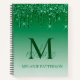 Green Sparkle Glitter Drip Monogram Script Name Notebook