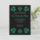 Green Sparkle Shamrock St. Patrick's Day Black Invitation