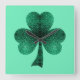 Green Sparkles Shamrock St. Patrick' Day turquoise Square Wall Clock
