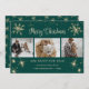 Custom green photo Christmas cards featuring snowflakes and stars on the front and sparkly snowflakes at the back. Easily personalise these green photo Christmas cards with your images, text and a family name.