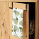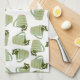 A fresh kitchen towel design is of a digitally altered photograph of a green spiral shaped tea cup with sprigs of mint sticking out of the top then duplicated for the design over a white background. Click customise to add text.