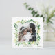 Simple and classy, these wedding save the dates are the perfect way to announce to all of your friends and family about your soon-to-be big spring or summer big day celebration. Features greenery around a frame of the dill, mint, rosemary, thyme, parsley, olive branch, and other leaves that surrounds a photo template. The back is covered by a pattern of the medicinal herbs. All green text is customisable.