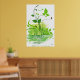 Decorative vector design of green plants with rose buds, next to a little stream of water. This green and white design can bring a fresh look to your walls decor. Customisable product.