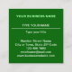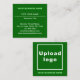 Green square business card for your customers or clients to easily find your business address and contact information. The front side contains plain text information and the back side contains your business name and logo. Customise it by typing your business name, your name, your title, address, phone number, e-mail, website or social media page and uploading your business logo. Square business card that you can also use to build brand name awareness. Please check the appearance of the front and back sides after typing texts and uploading logo. If the appearance is pleasing to you, you can place your order now. If you need to resize or reposition the texts and logo, please adjust in the design tool. You can also change the background colour, font colour and font style in the design tool.