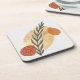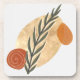 A boho inspired design of simples shapes in rustic colours of brown, beige, and orange with a floral plant stalk as the focus.