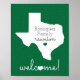 Let the whole family know where to go for the annual reunion with this Texas state-shape design sign. Includes space for your family's name and a friendly welcome. Available in Tech red, Aggie maroon, Longhorn burnt orange, Eagle green, royal blue, Miner orange and Horned Frog purple. Customisable by changing the colour of the state shape, heart or text. Matching products available, including invitations.
