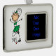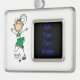 Green Stick Figure Cheerleader Silver Plated Framed Ornament
