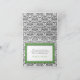 Trendy and modern Thank You cards. Featuring a green stitched design/illustration over a black and white damask pattern. The inside has a white space for a personalised message (or delete to leave blank) and a damask pattern on the inside. Great for Weddings or Bridal Showers.