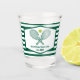 This classy modern country club shot glass features tennis rackets and a ball above your tennis team name and established date. Green and white striped gifts for your tennis players and country club members.