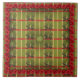 The original artwork on this 6” Ceramic Tile is a fabric pattern by ZoeSPEAK, with a button in the centre giving it the look of a tufted pillow. The basic colour is a moss green, with vertical butter yellow stripes, and horizontal deep red stripes woven through them. Between the yellow and red stripes there are rows of little green kalanchoe plants (photos by Zoe). There is also a border of deep red flowers (hibiscus photos by Zoe), for an eclectic look, mixed bits from earlier times...