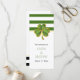 Green stripes and clover Irish wedding ceremony and party program. It features a clover or shamrock with gold outline and green and white stripes.