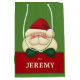 Green Stripes with Festive Santa Christmas Medium Gift Bag