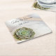 The pretty Green Succulent on White Wedding Paper Coasters can be personalised with the names of the bride and groom and date and used for the drippy cocktail glasses at your elegant garden party inspo bridal shower or marriage reception. These classy custom natural disposable coasters feature a digitally painted close up floral photograph of a green succulent plant with a white bridal veil and white satin background.