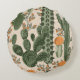 Green succulents, orange flowers, beach wallpaper. round cushion